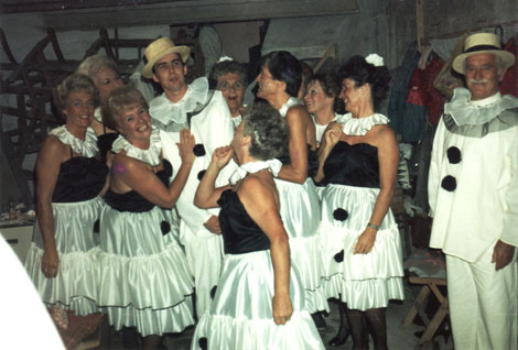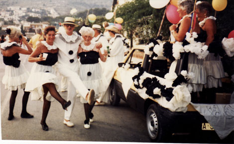 From the beginning this side of the Society has been important and has increased now that we have our own premises. For many years we were active in the San Juan Fiestas and were accorded the privilege of leading the Fiesta procession.  However, the expenses incurred as a result of moving from the Casa de la Falange to Benitachell then to the Moli Blanc and to Gata strained the resources to such extent that money was not available for building a Float etc for the fiestas, and we ceased to be involved in this.  We were involved in the International Festival since that event began until 1999.  Many other, purely social, events were organised during the year and some activities have continued to the present day, such as a visit to the Go-karts, and also various events in the Studio. There was an annual dinner, and after-show dinners.  Altogether, with five productions each year and several social events organised, Jávea Players became a vibrant and very active Society.