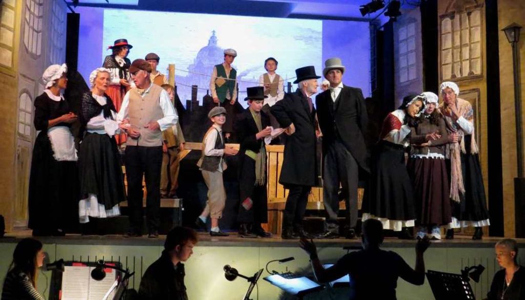 A cast of 25 sang their hearts out through 20+ catchy tunes from Lionel Bart’s musical, the youngsters in particular – aged nine-15 – surprising everyone with their talent.