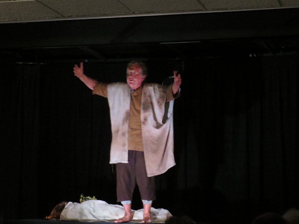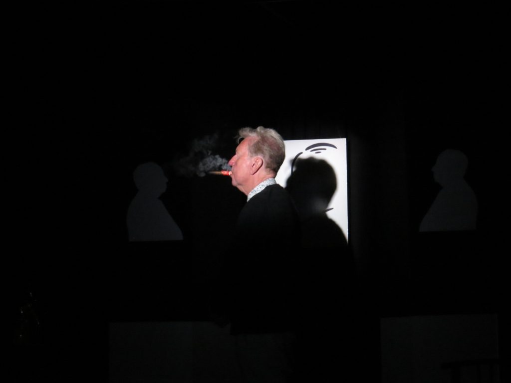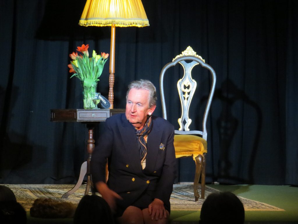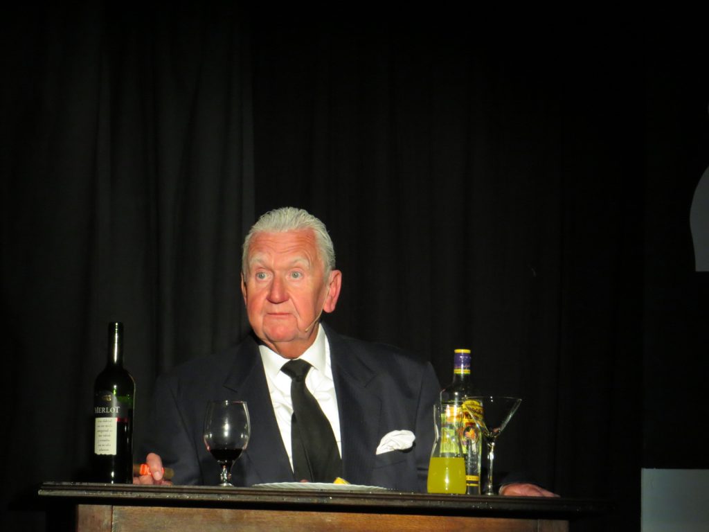 His portrayal of Maggie was brilliant, fielding totally unscripted questions from the audience which of course included the sinking of the Belgrano and the miners’ strike. One question was: “Mrs Thatcher, I know it’s past your time, as you’re dead, but what would you have thought of Boris?” to which ‘she’ replied: “Firstly, I’d send him the address of my hairdresser! He’s a buffoon”.